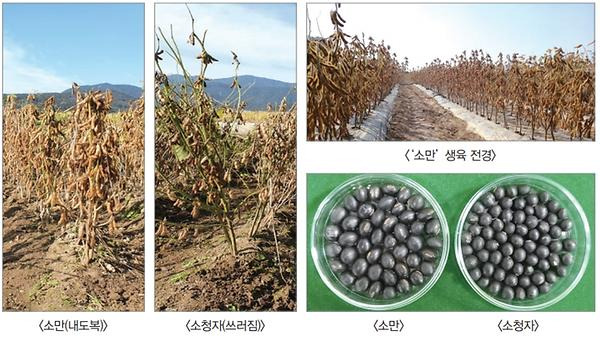소만 검정콩은 내탈립성 유전자를 가지고 있어 수확 시 꼬투리에서 잘 떨어지지 않아 기계수확이 용이합니다. 실제로 진천농장 등 충북 지역 농가에서는 10a당 303kg의 높은 수확량을 기록하며, 기존 국산콩 대비 13% 이상 생산성이 향상되었습니다. 쓰러짐 저항성도 우수해 대규모 재배에 적합하고, 이모작이 가능해 농가 소득 증대에도 기여하고 있습니다.