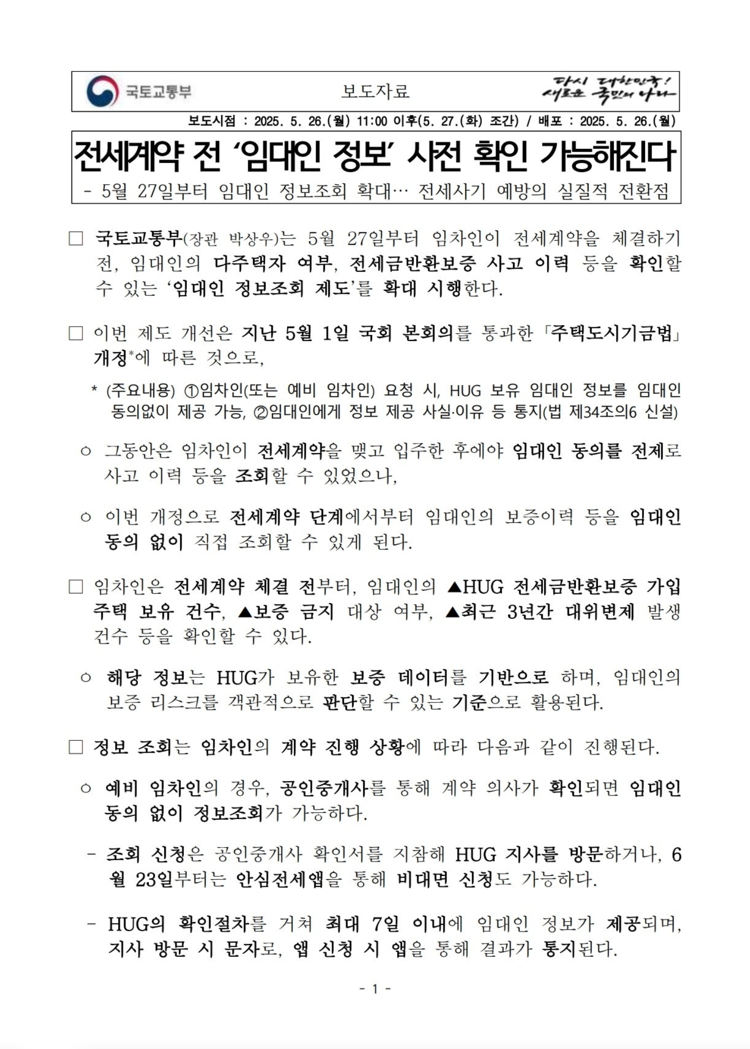 2025년 5월 27일부터 시행된 ‘임대인 정보조회 제도’는 전세 계약 전에 임차인이 임대인 동의 없이도 중요한 정보를 확인할 수 있도록 마련된 제도예요.