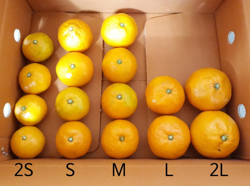 귤은 크기별로 2S, S, M, L, 2L로 나뉘며, 이는 열매의 지름(횡경)을 기준으로 해요. 제주감귤 기준으로 보면 2S(49~54mm), S(54~59mm), M(59~63mm), L(63~67mm), 2L(67~71mm)로 구분돼요. 이 외에도 소과, 중과, 대과, 로얄과 등으로 불리기도 하죠. 보통 소과는 2S~S, 중과는 M~L, 대과는 2L에 해당해요.