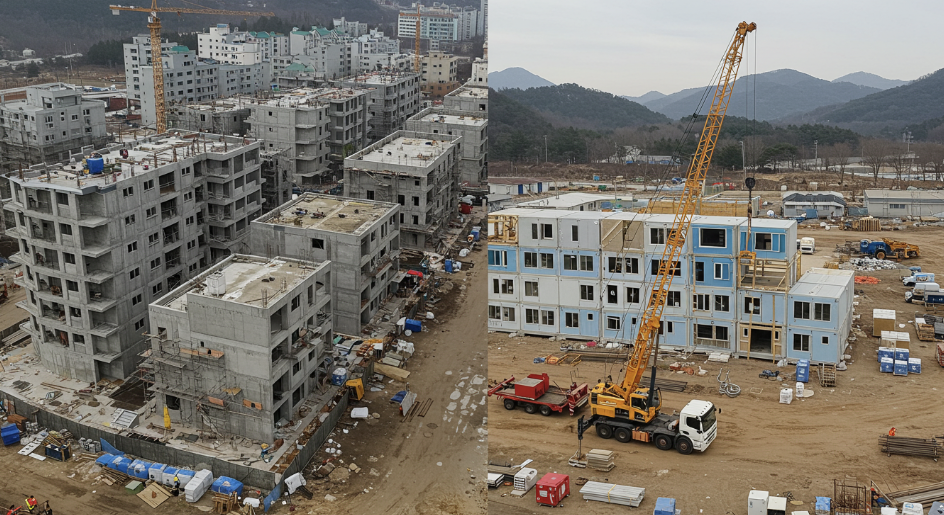 조립식·모듈러 공법은 전통 목조·철근콘크리트 대비 시공 기간을 30~50% 단축할 수 있습니다.
