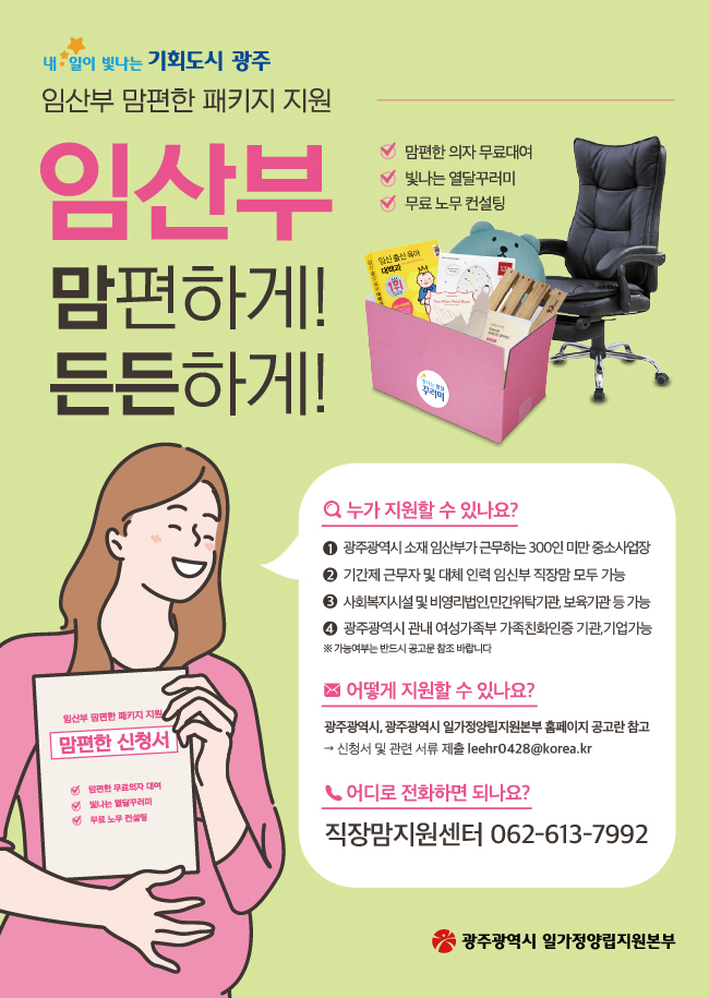 - 문의처: 광주시 일가정양립지원본부 직장맘지원팀(☎ 062-613-7992)