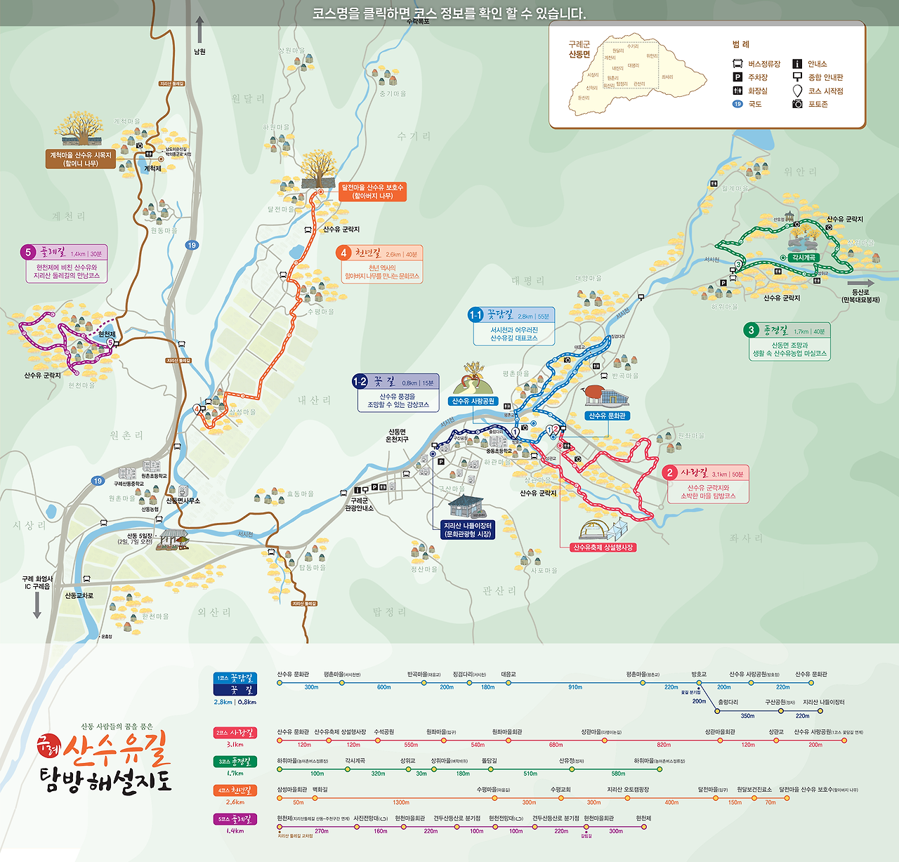 천년길(2.6km, 40분) | 천년 된 산수유나무와 역사의 숨결 |